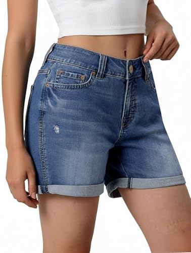 These Beauty From Pain Samantha Allsop Denim Shorts are a classic casual staple designed for comfort and effortless style. They feature a medium blue wash with subtle fading and a light distressed detail for a lived-in, vintage feel. The mid-rise design includes a traditional five-pocket construction and cuffed hems that add a clean, polished finish to the relaxed aesthetic. Made from durable denim, these shorts are perfect for warm-weather outings or pairing with a simple tank top for a timeless summer look.