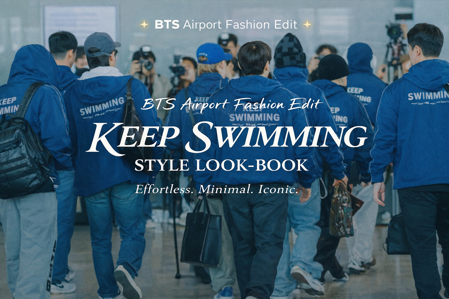 In conclusion, the BTS “Keep Swimming” Style Look-Book is a perfect example of how simplicity, comfort, and meaning can come together to create a powerful fashion statement. From the signature navy jacket to the carefully chosen accessories, every piece reflects a balance of functionality and effortless style that defines BTS’s iconic airport looks.