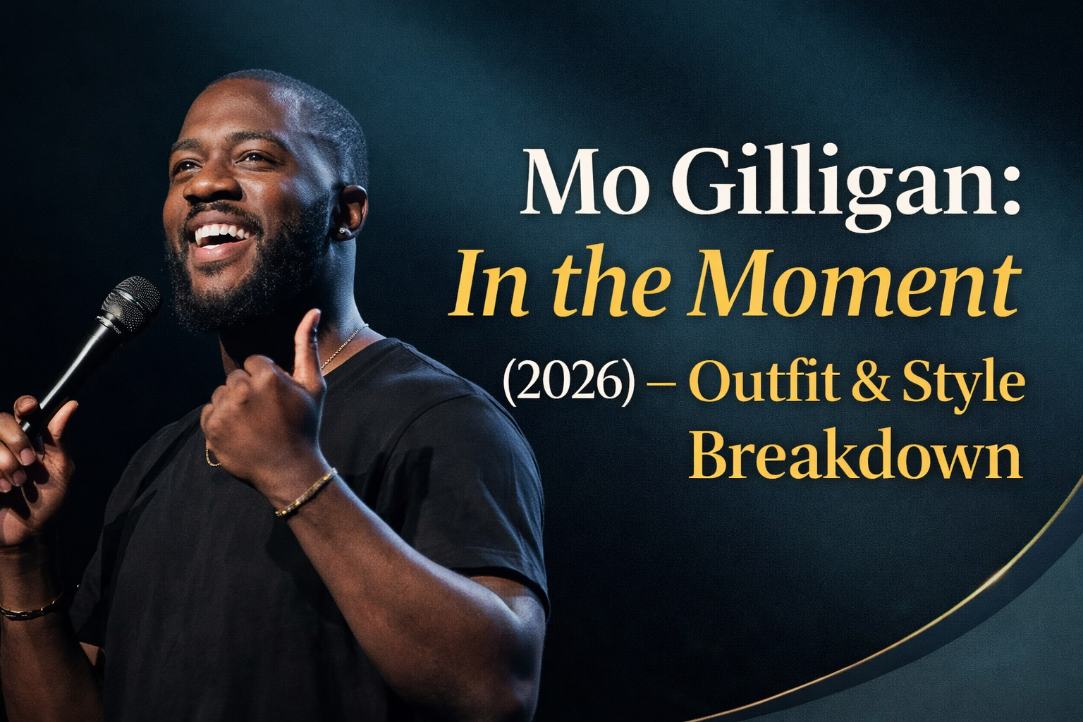 simplicity can be when styled with intention. A clean black tee, sharp trousers, classic sneakers, and well-chosen gold accessories come together to create a look that feels modern, confident, and perfectly suited for the spotlight. Each piece plays a role in building a cohesive, monochromatic aesthetic that lets personality and performance shine through. In the Moment Mo Gilligan 2026 …