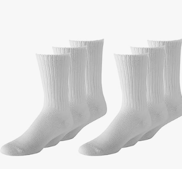 Simple white crew socks peek out subtly beneath the trousers, maintaining the uninterrupted cream-and-white color story. Though minimal, this detail is essential in keeping the outfit cohesive and polished. The classic crew length and ribbed texture add a touch of athletic authenticity that ties back to the sporty inspiration behind the jersey look.