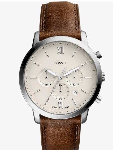 This elegant timepiece blends classic design with modern sophistication, featuring a polished stainless-steel case paired with a rich brown leather strap for a refined, timeless look. The clean cream dial is accented with minimalist hour markers, Roman numerals at key positions, and multiple sub-dials that add depth without overwhelming the design. Precise chronograph detailing and a smooth quartz movement ensure reliable performance, making this watch as functional as it is stylish. Ideal for both formal occasions and everyday wear, it offers understated luxury that effortlessly elevates any outfit.